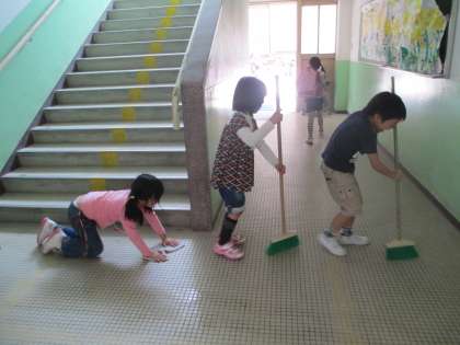 ほうきをつかってはいていたり,ごしごし廊下を力強くぞうきんでふいたりと,日に日に掃除が上手になっています。