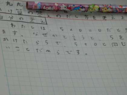 自分なりにどう考えて答えを出すのかを九九のきまりを使って説明できるよう,ノートに書いていました。ノートも丁寧に書くことができていますね。