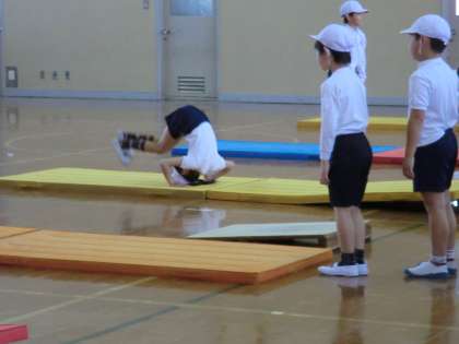3年生は体育館でマット運動に取り組んでいます。