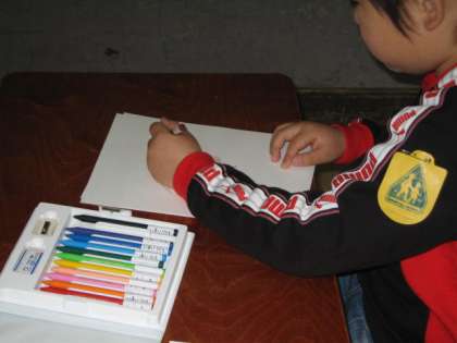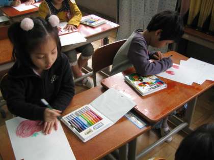 今,国語では名刺作りをしています。初めての参観日に「どうぞ よろしく」の学習をします。クラスの友達となかよくなるために,名刺交換をしようと計画しています。子ども達は1枚1枚丁寧に書いています。そして,名刺の裏には,自分の好きなものの絵を描いています。だれに渡すのか楽しみにしながら作っている子ども達です。
