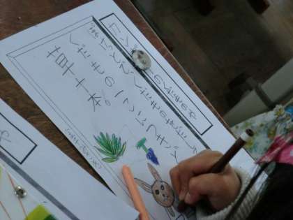 「カンガルーのゆうびんや」「ラッコのわりや」「ペンギンのおどりや」「チーターのおとどけや」などなどおもしろそうなお店をたくさん考えていた3年生の子どもたちです。書き方も,改行の仕方に気を付けたり,絵を入れたりと読みやすいように工夫していました。