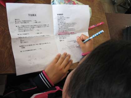 子どもたちは各係ごとに分かれて準備をすすめています。班長はいろいろな場面での司会や挨拶の言葉を考えたり,食事や生活係はメンバー表を作ったり,平和集会係は折鶴の準備をしたりしています。