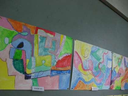 連休前から取り組んでいる図画,「大好き自分の線と色」の仕上げの様子です。