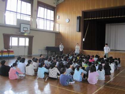 始まるに向けていろいろな諸注意を聞くために、中間休みに体育館に集まりました。