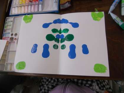 いろいろな色や模様の画用紙が集まったら「ペーパーショップ」の開店です。