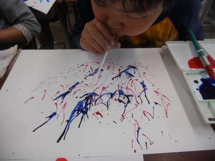 様々な技法で自分だけの模様の画用紙を作っています。