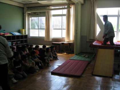 これから,1グループごとにプレールームに招待していただきます。子ども達はとても楽しみに待っています。