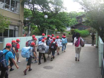 子どもたちが楽しみにしていた修学旅行,早朝から6年生全員そろって出発しました。好天にも恵まれた今日,いよいよ楽しい旅の始まりです。みんな元気に行ってらっしゃい!