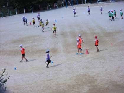 3年生は体育でリレー学習に取り組み始めました。折り返しリレーのような短い距離ではなく,トラックを走ります。