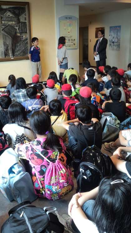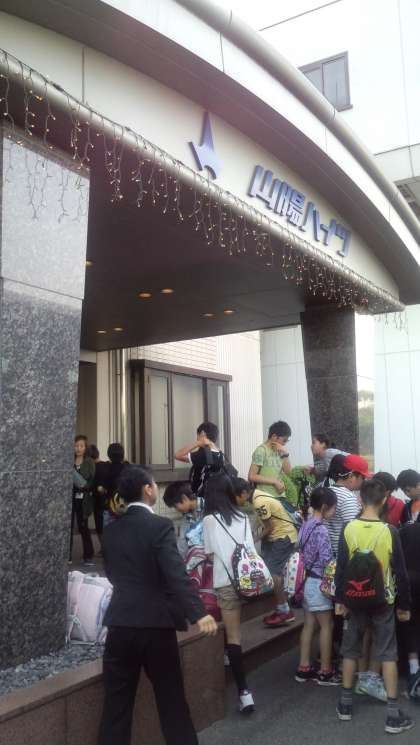 バスの旅を終え,ようやく宿泊施設に到着しました。着いてから,入館式を行いました。