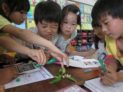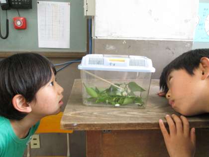 生き物の様子を見る子どもたちのまなざしは生き生きとしています。子どもたちにはチョウに「勉強させてもらっているね。」と話しています。学習を通して命の大切さについても考えていきたいです。