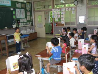 毎日がんばっている音読の練習ですが,お話をすっかり覚えて,お家でも暗唱している人も増えてきました。そこで,国語の時間に,みんなの前で発表してもらいました。