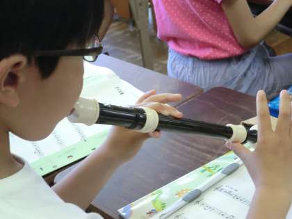 タンギングや姿勢に気を付けて「シ」の音ばかりを練習してきましたが,今日からやっと「ラ」の音も加えて練習しました。「シ」だけや「ラ」だけではきれいに音を出せるのですが,2つが混ざると指の動きが難しいです。人差し指と中指を交互にうまく動かしながら,タンギングも意識して新しい曲を練習しています。