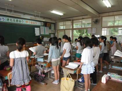 5年生は、「竹取物語」「枕草子」「平家物語」を、しっかりと口を開けて、テンポ