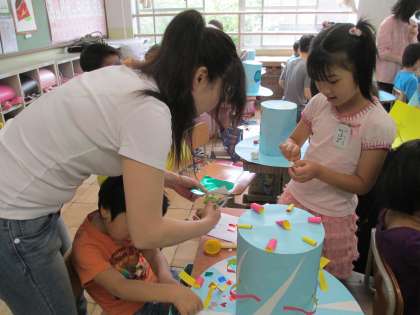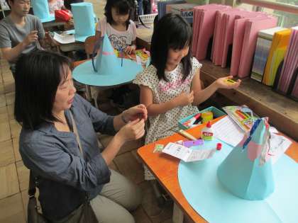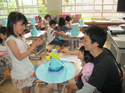 保護者の皆さんと一緒にぼうしの飾り付けをすることができて,子どもたちもとても楽しそうでした。また子どもたちと一緒に活動をしてくださった保護者の皆さんの姿,とてもすてきでした。本当にありがとうございました。