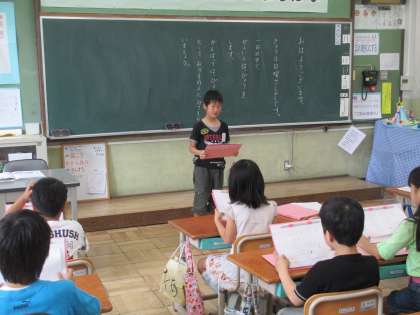 今日は日曜参観で,保護者の皆さんに見ていただきながら,読み声をすることができました。大きな口を開けて1つ1つの言葉をはっきりと読むことができました。来週からは読む詩が変わります。新しい詩との出会いが楽しみですね。