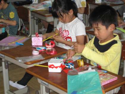 図工の授業で,「ニョキニョキ飛び出せ」の作品を仕上げました。子ども達は,お友達の作品を鑑賞して,「じょうずにできているなあ。」「おもしろいアイデアだね。」などと口々に言っていました。がんばって作った作品なので,出来上がるととても嬉しそうに見せてくれました。