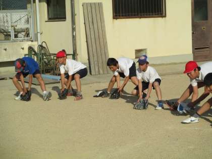 練習の最後には,ゴロの姿勢をもう一度確認しました。