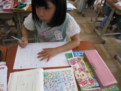 どんな技があるのか,大きな魚よりも泳ぐのが早いなど,本文の中から読み取りをしていきました。「ぼくもはやく泳げるようになりたいな。」と話している子どももいました。