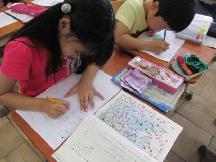 小さな魚のきょうだいたちと楽しみながら住んでいることを読み取り,最後には学習の感想を言いました。