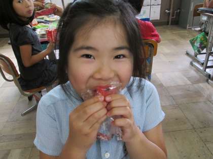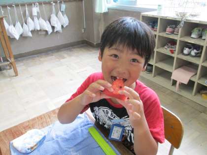 スイカが大好きの子どもも多く,喜んで食べていました。好き嫌いなく食べて,夏バテしない元気な子どもたちでいてほしいです。