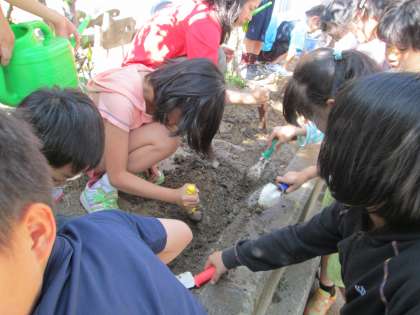 固くなった土を掘り返すのは大変な力仕事でしたが,「先生やるよ!」「任しといて」と進んで取り組む姿勢に感心させられました。