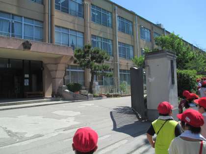 桃山中学校の前を通ると,「卒業したらこの学校に行くんだね!!」と話をしていました。場所がわかり,どんな施設があるのかじっくり見ながら行くことができました。