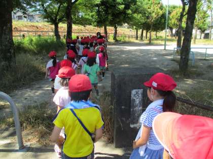 お天気も良く暑さを感じながらの探検でしたが,「桃山小学校ってこんなに広いんだね!!」といろいろな施設を見ながら,探検しました。
