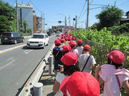 生活科の町探検で,今日は桃山小学校の北方面(桃山中学校など)に行きました。