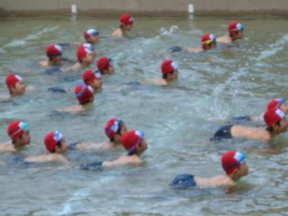 今日はどんどん気温が上がりました。1年生は,ありがたいことに「水遊び」がありました。先日は,冷たく感じたプールの水も今日は,とても気持ちがよかったです。まだ低水位なので,「わにさん歩き」や「犬さん歩き」「かにさん歩き」などをたっぷり楽しみました。水の中に顔をつけても平気な人が多いですね。そこで,今日は伏し浮きにも挑戦してみました。子ども達には,「はっぱになって,浮いてみよう。」と声かけしました。ぷっかり浮いていた子ども達です。