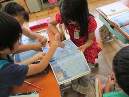 班で協力して数を数えていた時には「こうやって数えたらいいよ。」とお互いに教えあっていました。