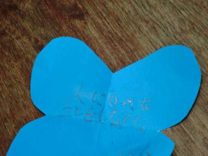 ひとりひとりの思いや願いをあじさいに書きました。