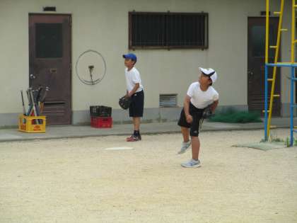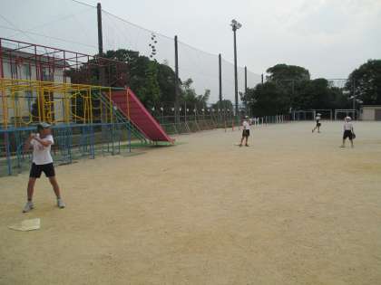 今日のソフトボールの練習は,キャッチボール,ゴロの取り方の練習,バッティングをしました。