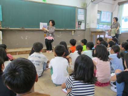 朝の読書タイムに,絵本の読み聞かせに来てくださいました。