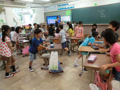 今日も雨が降り続いています。けれど3年生の子どもたちはとっても元気に過ごしています。4時間目,あるクラスでは席替えをしていました。
