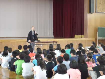 1時間目は,体育館で,茶道の歴史などのお話をお聞きしました。