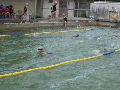 ねらい1は,今できる泳ぎ方で距離やタイムに挑戦です。みんなねらいをもってしっかり泳ぎました。