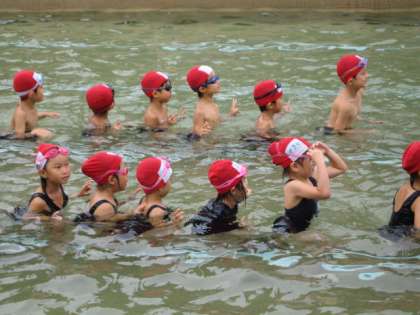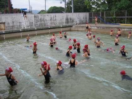 今日は,1・2時間目が「みずあそび」でした。雨も降っていなかったので,プールに入ることができました。伏し浮きや蹴伸び・バタ足の練習をいました。水中で息を吐き出す練習をしていますが,これがなかなかむずかしいですね。