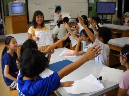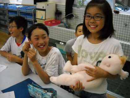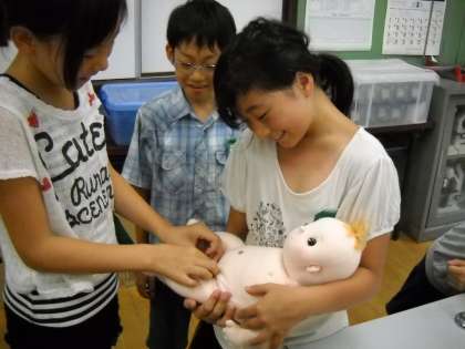 5年生の理科では「メダカのたんじょう」の学習が終わり,「人のたんじょう」を学習しています。本やインターネットなどで調べたことをグループごとに発表しました。「へそのおはどんなはたらきをしているでしょう?」「羊水は何のためにあるでしょうか?」などクイズ形式で発表しました。最後には誕生直後の赤ちゃんと同じ大きさ同じ重さの人形を抱っこしました。「思ったより重いなぁ」と言っていました。家庭でも自分の誕生についてお話が聞けるといいですね。