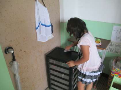 今日のそうじ名人は,自分から進んで入り口の机の上や入れ物の上をふいている子どもです。