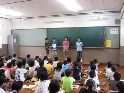 今日は,学年で集まり山の家に向けての最後の話をしたり,出発式や入所式など,いろいろな式の練習をしたりしました。式の司会やあいさつをしてくれる子は内容をしっかりと覚えて,堂々と言うことができました。本番でも,高学年らしい司会やあいさつをしてくれることと思います。