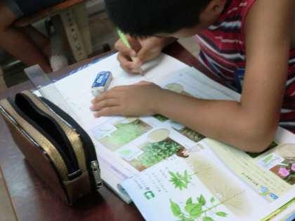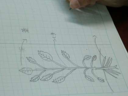 植物の体のつくりを学習したあと,ひまわりの絵を描き,根・茎・葉を確かめました。