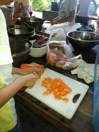 今日の野外炊事は,お昼ごはんのカレー!