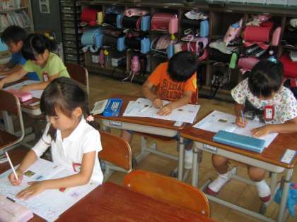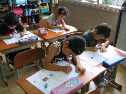 7月に入ってから,朝学習や国語の授業で「カタカナ」を学習をしています。ひらがなのときにマス目のリーダー線に気をつけて書く習慣がついているので,カタカナでも始筆や終筆に気をつけながら書いてくれています。ただ,1日1文字ずつではないので,忙しいです。まずは,カタカナが読めるようになってほしいです。