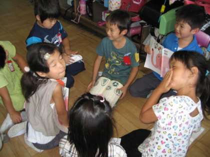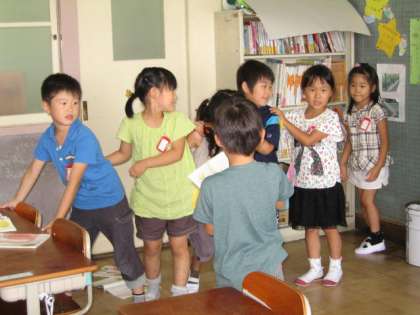 国語の学習では,「おおきな かぶ」の劇をするために音読をしています。ずいぶん上手に読めるようになってきました。そこで,7人ずつ4つのグループに分かれて,劇の練習を始めました。まずは,配役決めです。自分の思う役が友達と重なって,なかなか決まらないグループがあったり,スムーズに決まってさっそく立ち稽古をしだすグループがあったりといろいろです。明日から本格的に練習をしていきます。