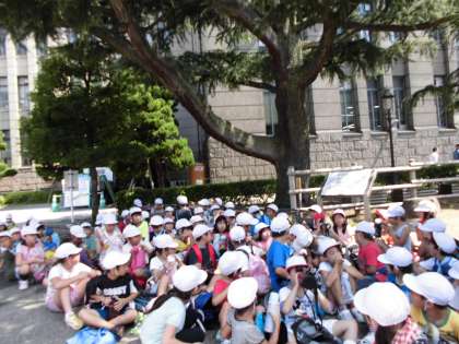 社会見学で,京都市内を巡りました。暑い中でしたが,京都の町の様子を自分の校区とくらべながら見学します。