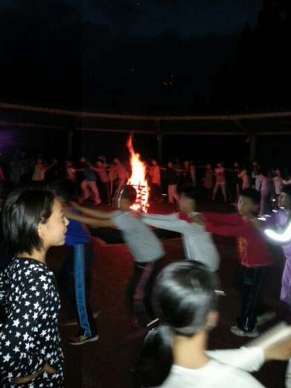 火の神からいただいた火を囲んで,歌,ゲームで大いに盛り上がりました。