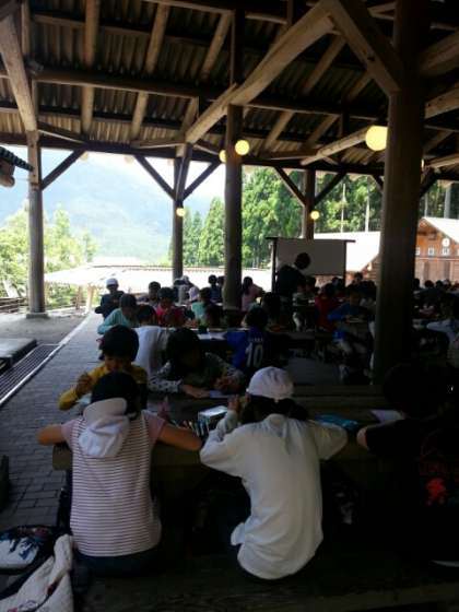 心地よい風がふき,川のせせらぎや鳥のさえずる声が聴こえる素晴らしい自然の中の教室です。