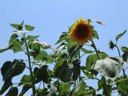 みんなの身長よりずっとずっと大きくなったひまわりがついに花を咲かせました。
