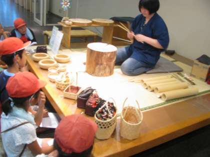 竹のひごをつくってそれを何本も編み合わせてつくっていく
